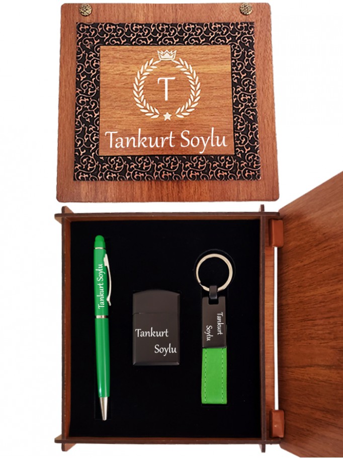İçerisinde özel tasarım aksesuarların olduğu Erkeğe Özel İsimli Kalem Çakmak Ve Anahtarlık Kutulu hediye ettiğiniz kişi gün içerisinde sürekli bu aksesuarları kullanacak.