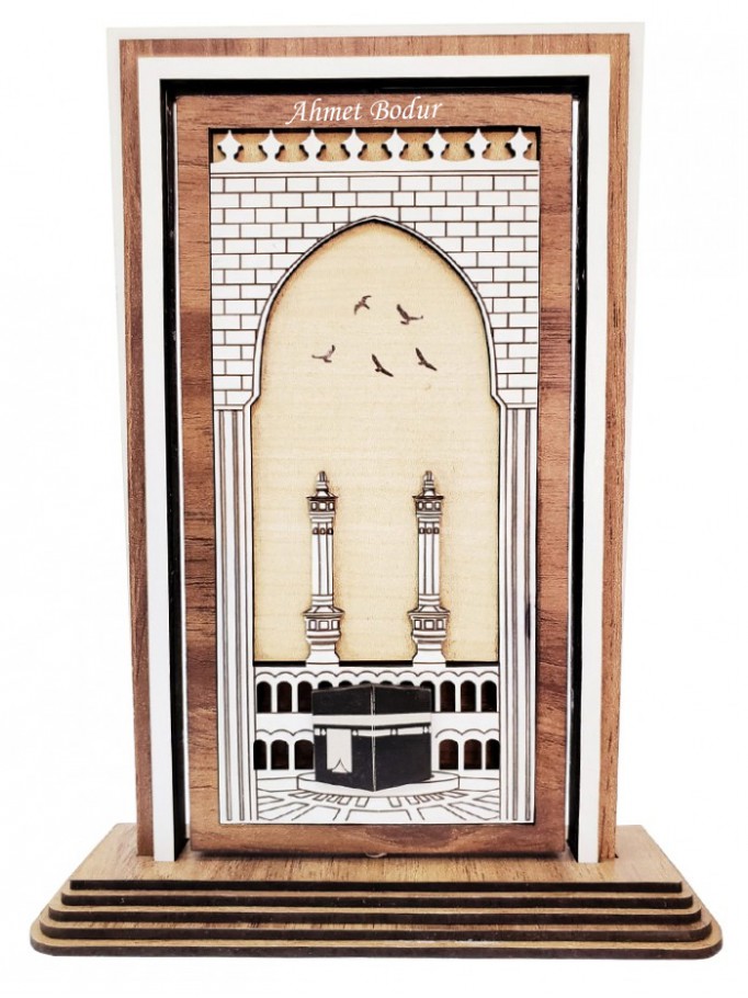Hem güzellik abidesi olan hem de çok dekoratif bir kaide olan İsme Özel Kabe Ve Besmeleli Dönen Ahşap Kaide en uygun fiyata sadece hediyefan da.
