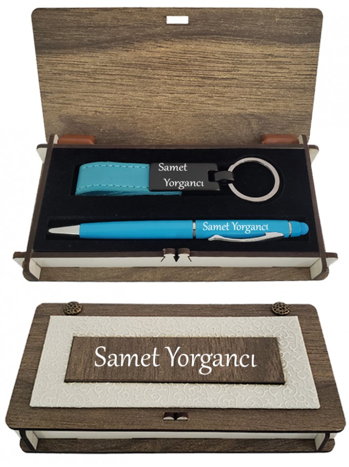Kutunun Üzerine Ve İçine İsimler Ve Notlar Yazdırabileceğiniz Kişiye Özel Turkuaz Renk Dokunmatik Kalem Ve Anahtarlık Set Sevdiklerinize Muhteşem Bir Hediye Haline Geliyor.