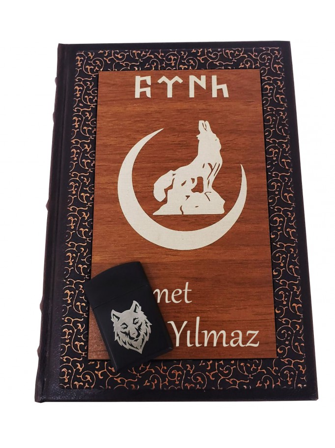 Üzerinde hediye ettiğiniz kişinin aynı zamanda Göktürk yazısıyla Türk ve uluyan kurt olan bu defter ve çakmak sizleri sevdiklerinizi çok derinden etkileyecek bir hediye.