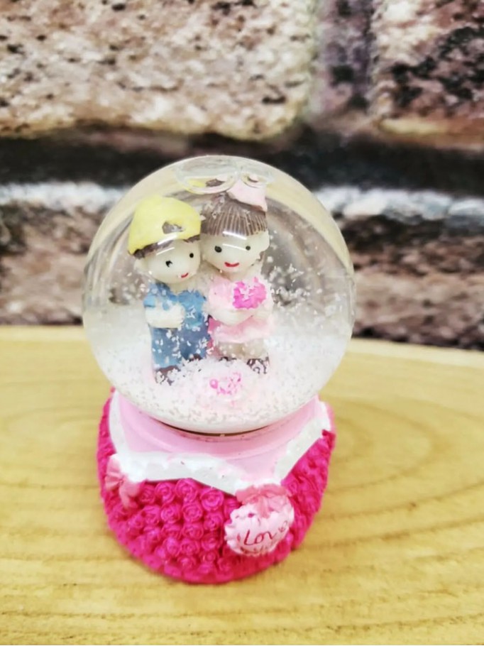 Pembe Mini ışıklı kar küresi içinde oturan sevgililer ve içindeki kar tanecikleri ve led ışık yanması sayesinde sevgilinize ilginç ve romantik hediye verebilirsiniz.
