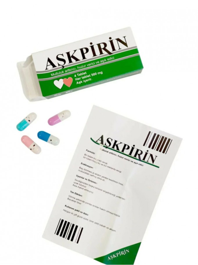 - Aşkpirin içinde 4 adet kapsül ve içinde not çıkmaktadır.